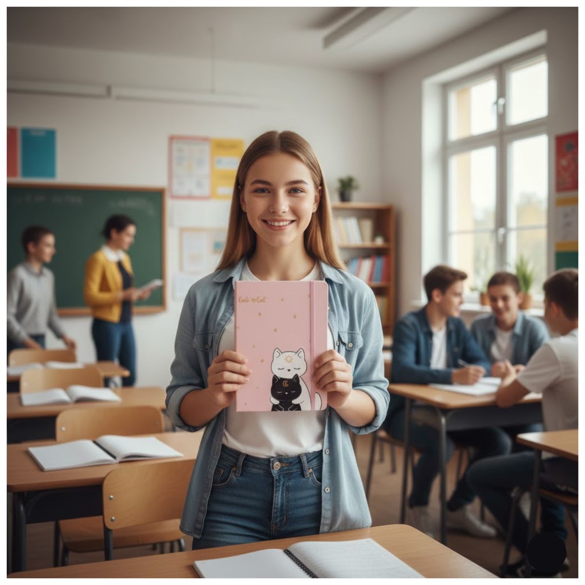 ¡Anota tus mejores ideas con la energía tranquila! Este Cuaderno de Notas Two Element - Cute Cat es el compañero perfecto para quienes aman la estética moderna y buscan un espacio libre para sus pensamientos, clases o dibujos. Con un diseño vibrante como divertidas ilustraciones, esta libreta hará que escribir sea el momento más tierno, relajante de tu jornada.
