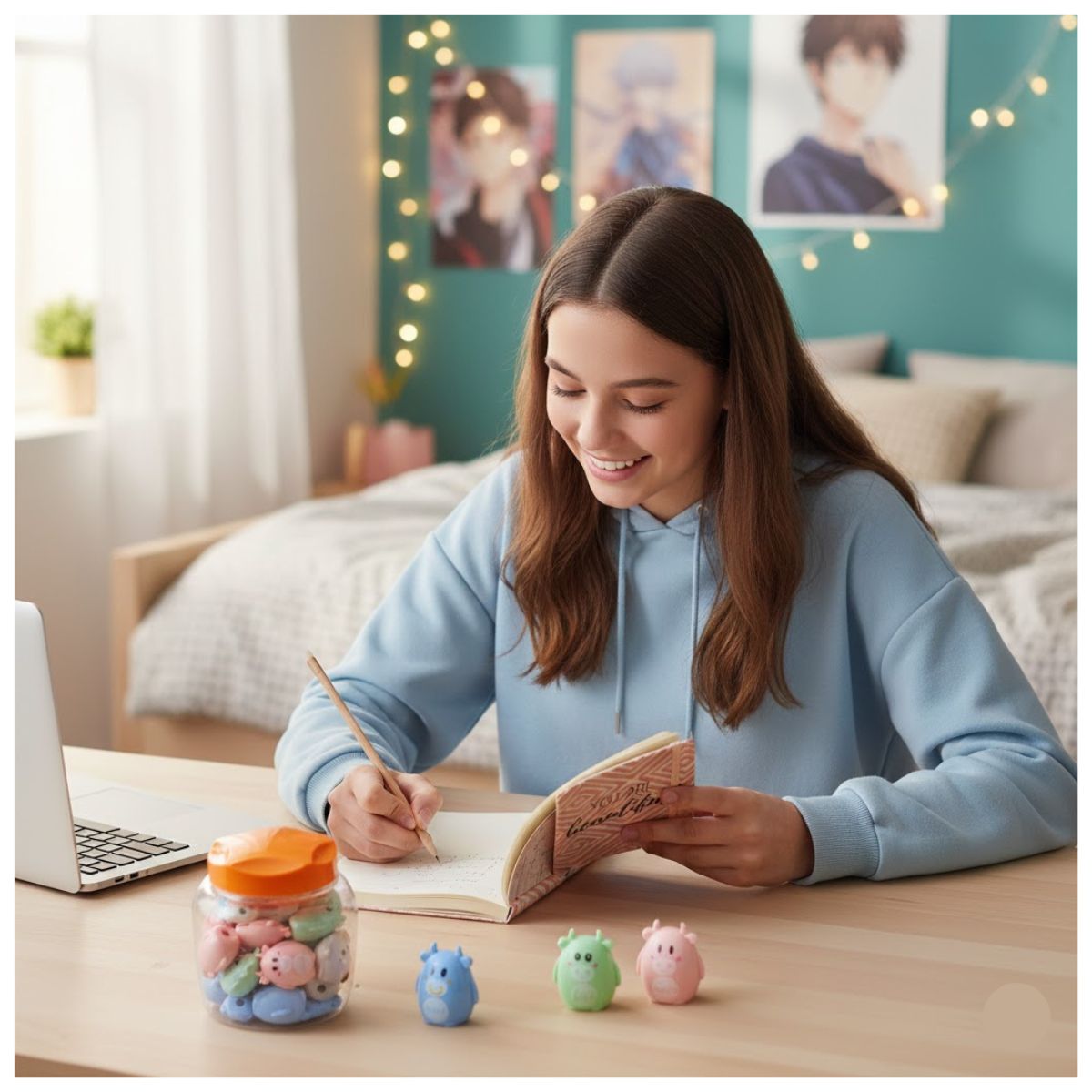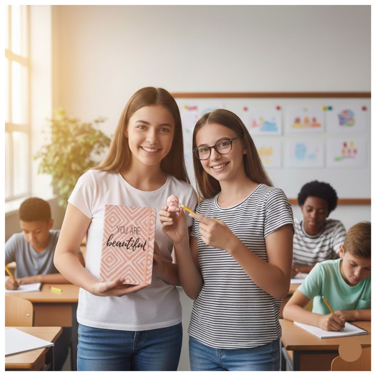 ¡Anota tus mejores ideas con la energía tranquila! Este Cuaderno de Notas “You are beatiful” es el compañero perfecto para quienes aman la estética moderna y buscan un espacio libre para sus pensamientos, clases o dibujos. Con un diseño vibrante como divertidas ilustraciones, esta libreta hará que escribir sea el momento más tierno, relajante de tu jornada.