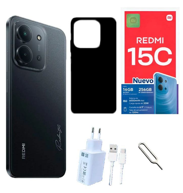 Xiaomi Redmi 15C 16/256 Gb El Xiaomi Redmi 15C es un smartphone de gran precio y prestaciones, con una gran batería de 6.000 mAh y carga rápida de 33W, pantalla IPS LCD de 6,9 pulgadas a 120 Hz y resolución HD+, procesador MediaTek Helio G81, cámara principal de 50 MP, y sistema operativo Android 15 con HyperOS. - Equipo libre para todas las compañías - Pantalla 6.9" LCD IPS, 120 Hz resolución 720 x 1600 píxeles relación de aspecto 20:9 (densidad de ~254 ppp) - Sistema Operativo Android 15, HyperOS 2 - Procesador Mediatek Helio G81 Ultra (12 nm) Octa-core (2x2,0 GHz Cortex-A75 y 6x1,8 GHz Cortex-A55) Mali-G52 MC2 - Ranura de Tarjeta: microSDXC (ranura dedicada) - Memoria RAM: 16GB (8 Físicas + 8 de Asistencia Virtual) - Almacenamiento interno: 256 Gb - Cámara principal: Flash LED, HDR. 50 MP, f/1.8, 28 mm (gran angular), 1/2.76", 0.64 µm, PDAF QVGA, f/3.0. Video 1080p a 30 fps - Cámara Selfie HDR 8 MP, f/2.0, (gran angular), 1/4.0", 1,12 µm. Video 1080p a 30 fps - Conector de 3,5 mm: sí - Altoparlante: sí - Wi-Fi 802.11 a/b/g/n/ac, doble banda - Bluetooth 5.4, ??A2DP, LE - GPS, GLONASS, GALILEO, BDS - NFC: no - Radio FM - USB Tipo-C 2.0, OTG - Huella dactilar (lateral), acelerómetro, brújula, Detección de proximidad virtual - Batería 6000 mAh 33 W con cable, PD - Medidas: 17.16 x 7.95 x 0.8 cm | Peso 205 g